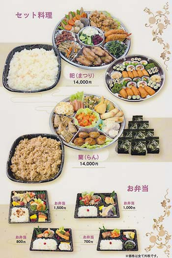 お葬式期間中の各会場での飲食のお手配をお受けいたしております。少人数から大規模葬式まで精進料理からオードブル、お弁当、おにぎりまでご予算に合わせた内容によりご満足いただけるお食事のご提供を心がけております。